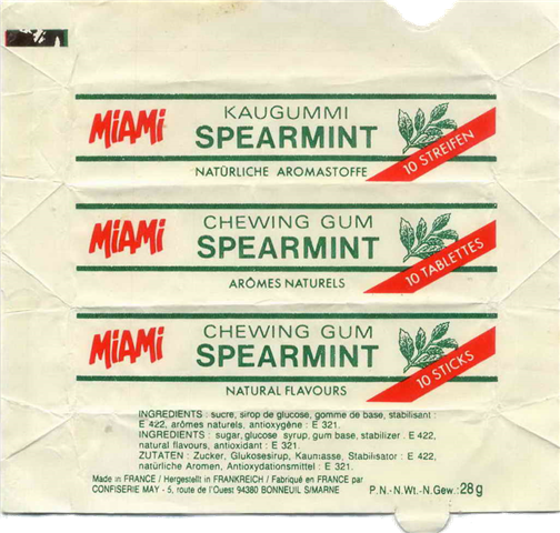 (Chewing-gum May SA France) au 5 route de l'ouest à Bonneuil sur Marne (94), soit à 2 km à vol d'oiseau, sur l'autre rive de la Marne.