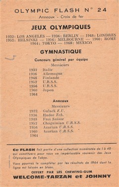 Chewing-gum TARZAN - 1964 série Jeux Olympiques